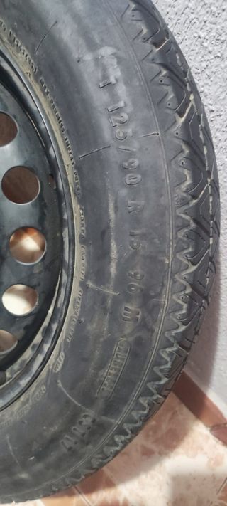 Rueda de repuesto para coche. - Indicador de velocidad máxima 80 km/h. - Indicador de velocidad máxima 50 km/h. - Llanta de acero.