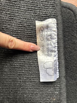 Alfombrillas originales para Ford EcoSport. - Referencia: GN15-B13017-GAW - Código de fabricación: 20190605 - Código interno: DFGGB - Incluye juego de alfombrillas delanteras y traseras.