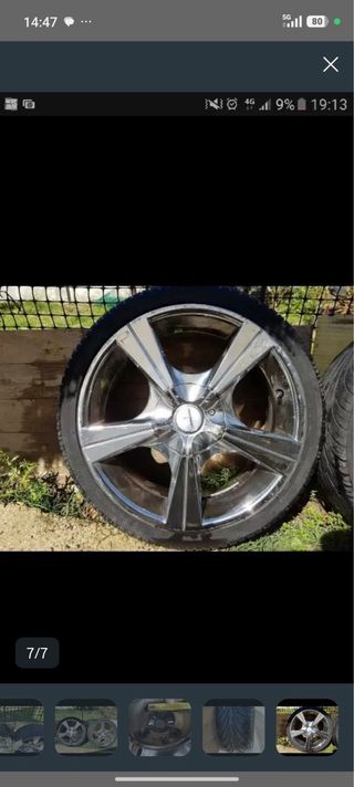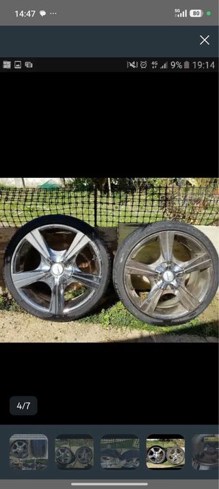 4 Llanta gomas de aleación para coche seat ibiza 4 tornillo acabado cromado. 1 llanta le farta la tapas delo tornillo seve foto Los neumatico son viejo - Diseño de 5 radios. - Acabado brillante.