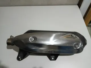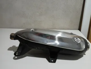 Sistema de escape y colector para Piaggio Beverly. - Pieza de recambio para motocicleta. - Diseño cromado y negro.