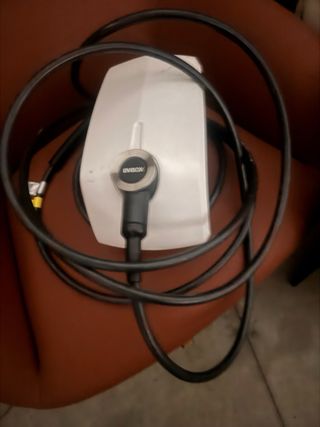 Cargador para coche eléctrico de la marca EVBOX. Diseñado para una carga eficiente y segura. - Color blanco. - Incluye cable de carga.