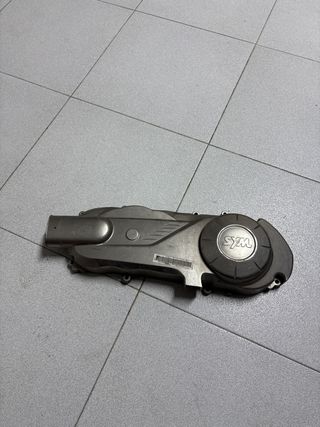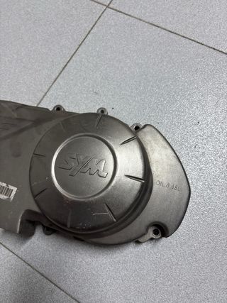 Tapa de protección para el variador de SYM. Pieza metálica con el logo de la marca. - Diseño robusto. - Acabado plateado.