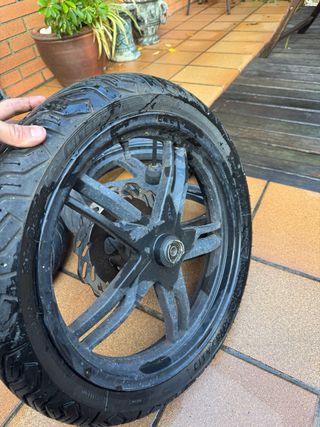 Llanta delantera para Sym Symphony SR 50cc y 125cc. Se vende tal como se ve en las fotos. - Llanta de aleación negra. - Incluye disco de freno. 110/70/16 NEUMÁTICO OK 25€ unidad 40€ las dos