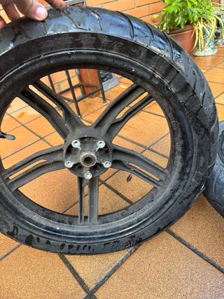 Conjunto de llantas y neumáticos para motocicleta. - Varias unidades disponibles. - Diseños variados. Mayoria de neumaticos a mas de un 65% de vida util Se vende en lote o por unidades 90/80/16 100/80/16 110/90/12 110/70/14 110/90/13 110/70/16 120/70/15 120/70/17 180/55/17 120/80/14 130/70/12