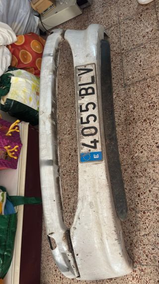 Parachoques delantero de coche, color blanco, con matrícula. - Matrícula: 4055 BLV - Color: Blanco - Material: Metal