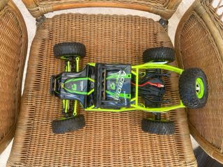 Coche de radiocontrol para escalada en roca, en excelente estado y con muy poco uso. - Diseño robusto y llamativo en verde y negro. - Ruedas todoterreno de gran tamaño. - Estructura tubular de protección. - Bateria extra