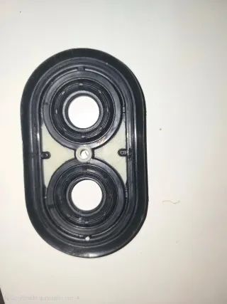 junta de sellado para el sistema de climatización (aire acondicionado o calefacción) de vehículos del grupo PSA (Peugeot y Citroën) - Fabricada en plástico negro. - Diseño ovalado con dos orificios circulares. - Citroen, Peugeot, grupo PSA - 4 piezas