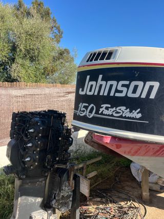 Motor fueraborda Johnson 150 Fast Strike. - Modelo: 150 Fast Strike - Marca: Johnson Se compraron todos los recambios para hacer un mantenimiento completo. Se vende con todo el cableado y mandos. Motor gira perfectamente cuando conectas la batería pero lo vendo sin funcionar.