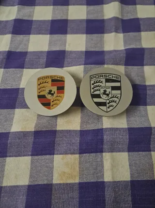 2 tapacubos con el emblema de Porsche. Uno de ellos es el modelo clásico a todo color y el otro es el modelo en negro y blanco. - Emblema Porsche clásico. - Emblema Porsche moderno. Envío x Wallapop x inpost