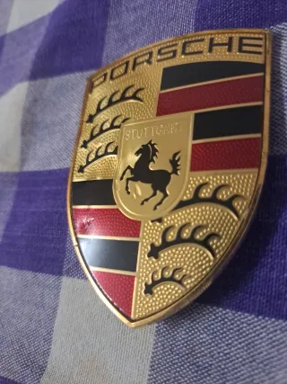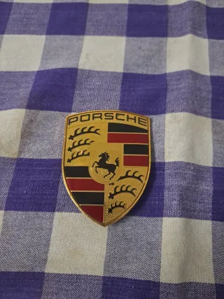Emblema metálico del fabricante de automóviles Porsche. - Diseño clásico del escudo. - Detalles en dorado, negro y rojo. Envío x Wallapop x inpost