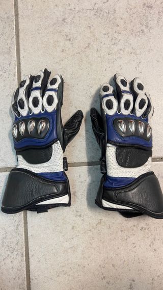 Guantes de moto de alta calidad en color azul y blanco. - Diseño deportivo y protector. - Materiales resistentes. - Cierre ajustable en la muñeca. - Marca: Rainers