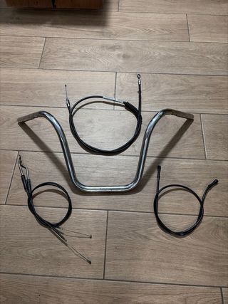 Kit de manillar y cables para Harley Davidson. - Manillar cromado. - Cables de embrague, acelerador. Y freno