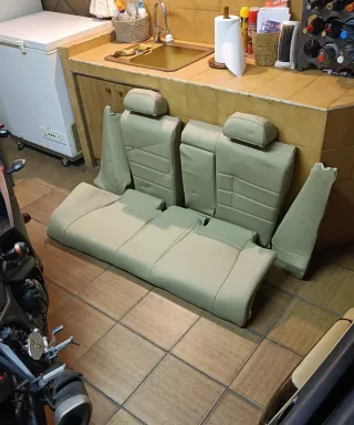 Fundas de cuero a medida para asientos traseros de Bmw e46 color beige. -Se venden las fundas sin los asientos. -Se adaptan a la perfección sin arrugas, son de cuero hechas a medida. Quedan igual que de serie, no se notan que sean fundas.