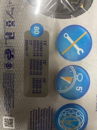 Cadenas para nieve, nuevas sin estrenar, modelo 80 de Norauto. - Homologación TUV. - Medida 9mm. - Incluye herramientas para montaje. - Indicador de tensión automática.