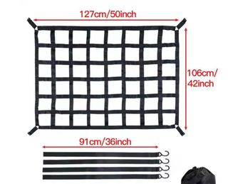 Red de sujeción para carga, ideal para vehículos 4x4 y todoterrenos. - Fabricada en material resistente. - Diseño cuadriculado para asegurar la carga. - Incluye puntos de anclaje en las esquinas. Utilizada como separación de cargas para un viaje nada mas. Separador de carga, raid, offroad, lada, niva, jeep, land rover, suzuki