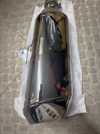 Silencioso de escape cromado para BMW R1250R y R1250RS. Diseño brillante y elegante. - Acabado cromado. - Soporte de montaje incluido.