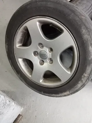 Juego de 4 llantas de aleación Audi de 16 pulgadas. - Diseño de 5 radios. - Acabado plateado. 205 55 16 A una llanta le falta el logo de Audi del centro