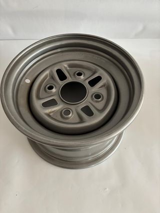 Juego de 4 llantas hechas para Seat 127 dos llantas en 5,5 y dos en 6 pulgadas y de diámetro 13. Se han hecho a medida,imprimado, pintadas y barnizadas todo hecho en cabina y secadas al horno. Están preparadas para ir sin cámara. Los tapacubos también van incluidos