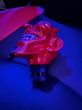 Perilla de cambio de marchas para coche, palanca de cambios Manual - Diseño llamativo con temática de diablo. - Acabado brillante en color rojo. - Detalles en negro y amarillo.