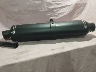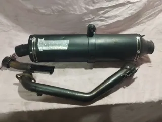 PRECIO NEGOCIABLE Sistema de escape para motocicleta. Compuesto por colectores y silenciador. - Colectores metálicos con acabado dorado. - Silenciador de color gris con detalles plateados.