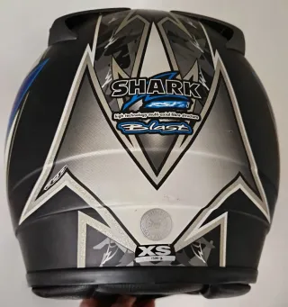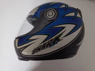 Casco integral Shark RSF con un diseño deportivo en azul y blanco. Ideal para motociclistas. - Diseño aerodinámico. - Visera transparente. - Cierre de seguridad.