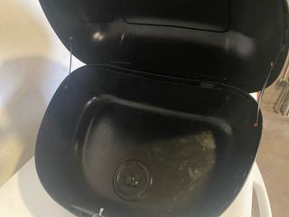 Baúl de moto de la marca TRESKO, con pequeña rotura última foto. - Color negro. - Incluye cerradura con llave. - Diseño aerodinámico.
