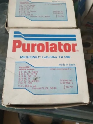 Filtro de aire Purolator modelo FA 78. Y AF 3113 Precio indicado por pareja de filtros. - Diseñado para modelos Renault, ver modelos compatibles. - Fabricado en España.