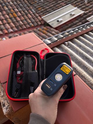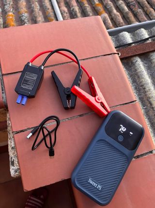 * 🚗 POTENCIA PROFESIONAL 4000A SweetSolutions Arrancador de baterías de coche y moto 4000A. Arrancador de coches portátil para vehículos gasolina o diésel. Booster batería 12V capaz de arrancar motores grandes incluso con batería totalmente descargada, ideal para emergencias. * 🔋 CARGA RÁPIDA 30W USB-C Además de arrancador, funciona como power bank con carga rápida 30W. Incluye cable USB C para cargar móviles, tablets y otros dispositivos en tiempo récord. Un arrancador de baterías de coche y moto pensado para el día a día. * 🖥️ PANTALLA DIGITAL INTELIGENTE Arrancador de coches portátil con pantalla LCD que muestra nivel de batería
