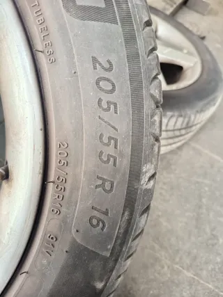 Juego de 4 neumáticos para Seat León MK2. Están bastante bien conservadas. Color gris plateado. - Medida: 205/55 R16. - Índice de carga y velocidad: 91V. - Tipo: Tubeless.