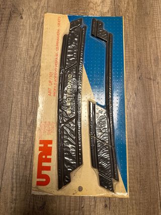 Juego de molduras nuevas y completas, nunca montada. Procedente de antiguo stock. Tiene la plantilla para su montaje. Marca FOX. Conservada en almacén, puede presentar marcas estéticas por el paso del tiempo. Mecánicamente a estrenar. Se envía bien protegida. Sirve para Vespa 75, 125, ET3, 125 primavera y seguro que sirve para más modelos.