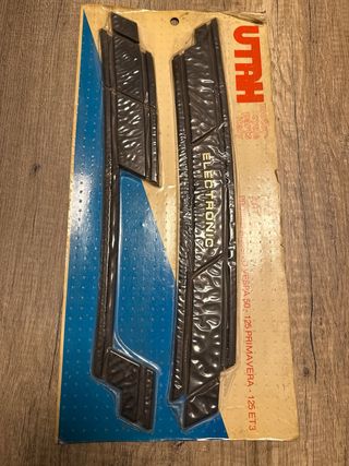 Mólduras negras cófanos Piaggio Vespa Pk 50 PK 125 primavera, nuevas nunca montadas, creo que sirven para más modelos de Vespa, dan un toque retro y diferente. Procedentes de antiguo stock.
