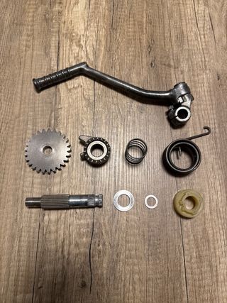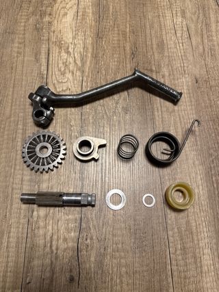 En muy buen estado, límpio y listo para montar, completo con sus arandelas (muy importantes para su correcto funcionamiento) y la pata o palanca de arranque funcionando bien con su abertura y cierre. Sirve para Honda Mbx, Hurricane, Nsr, Ns1, Mtx, Crm, 50 y 75 cc, sirve para las dos cilindradas.