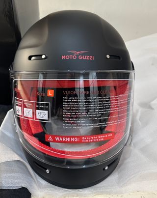 Casco integral para disfrutar de una protección completa y de la auténtica sensación Moto Guzzi. Es ideal para viajes de medio largo recorrido y en invierno gracias a su carcasa de fibra de vidrio, doble calota, visera antiarañazos, pintura resistente a los rayos UV, sistema de cierre en doble D y forro interior extraíble y lavable. Homologación ECE 22.06. Nuevo sin estrenar. Lo vendo porque me queda pequeño.