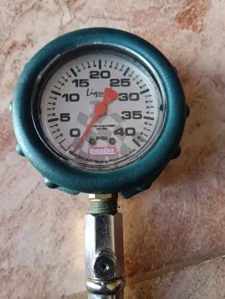 manómetro de presión de neumáticos líquido QuickCar Racing Products. para neumáticos con esfera de líquido. Mide la presión en PSI. - Escala de 0 a 40 PSI. - Marca: QUICKCAR Racing Products, inc. - Diseño con esfera analógica.