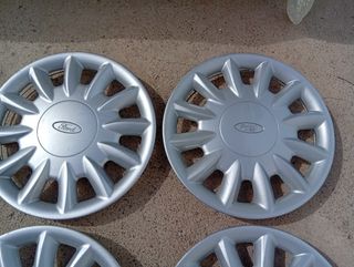 Set de cuatro tapacubos plateados con el logo de Ford. - Diseño de 15 radios. - Acabado plateado. - Logo de Ford en el centro.