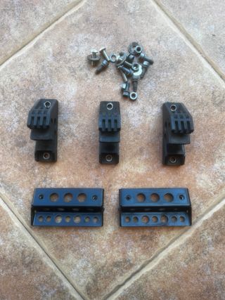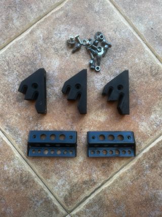 Kit de sujeción para asiento delantero y trasero. BMW R 1150 GS. ORIGINAL BMW. Incluye soportes y tornillería. - 3 soportes de plástico negro. - 2 soportes metálicos negros. - Lote de tornillos y tuercas.