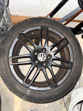 Juego de llantas de 17 pulgadas, compatibles con vehículos del Grupo VAG. Neumaticos seminuevos - Tornilleria 5x112 - Diseño deportivo de 5 radios dobles. - Acabado en negro mate con detalles pulidos. - Incluye tapa central con logo. - Medida de neumático: 225/ 50ZR17 98W. 200 solo las llantas 300 con neumaticos Tambien cambiaria por llantas de bmw tornilleria 5x120