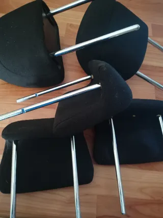 Conjunto de cuatro reposacabezas de coche en color negro. - Tapicería de tela. - Varillas metálicas.