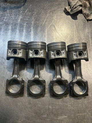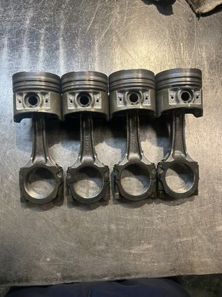 Importante la biela que tiene la cinta esta fuera de medidadas porque rodo la tapeta y no vale. Las demas bielas y pistones estan bien y han pasado por maquina de ultrasonidos. No se montaron porque se aprovecho la averia para forjar motor