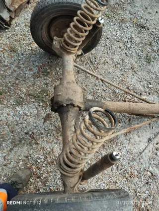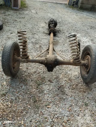 Conjunto de diferencial trasero, cardan y caja de cambios para Peugeot 403. Piezas de desguace. - Diferencial trasero. - Eje de cardan. - Caja de cambios. - tambores completos - muelles Recoger en mano.