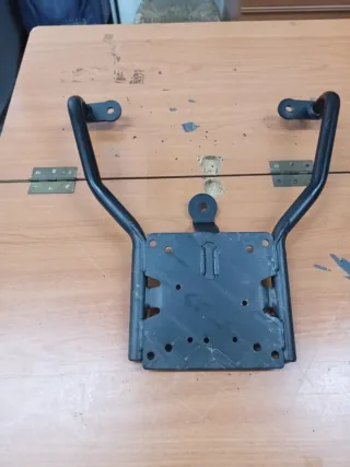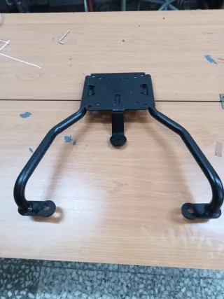 Soporte metálico negro para maletas de moto o scooter. - Fabricado en metal resistente. - Diseño robusto para asegurar las maletas. - Incluye puntos de anclaje. Tornillos incluidos