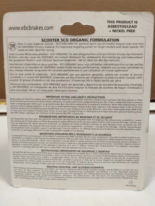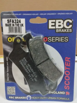 Pastillas de freno EBC SFA324 para scooter, fabricadas en el Reino Unido. - Modelo: SFA324 LK - Serie: O Series - Material: Orgánico con Kevlar - Homologación: R90/TÜV Tested (mit ABE) - Uso: Heavy-Duty Urban Formula