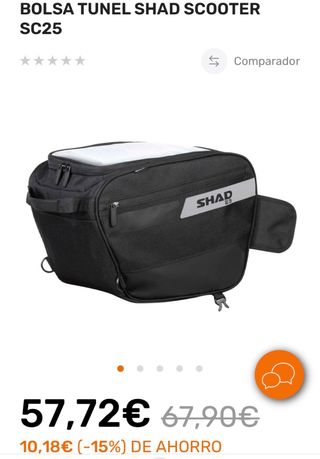 Bolsa de túnel para scooter marca Shad, modelo SC25, nuevo a estrenar con su etiqueta y toda sus accesorios, bolsa impermeable, correas para transporte, adhesivos... Ideal para llevar tus pertenencias de forma segura. - Color negro. - Con logo reflectante SHAD. - Compartimento superior transparente para móvil o GPS.