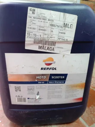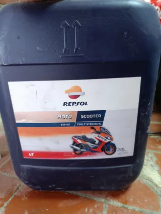 Aceite para moto scooter de la marca Repsol. Quedan 15 litros. - Tipo: 5W-40 - Tipo de síntesis: Totalmente sintético