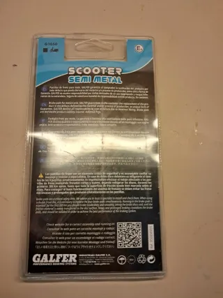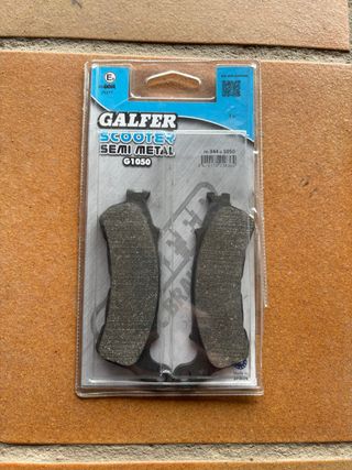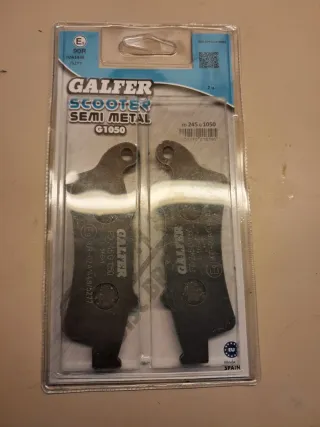 Pastillas de freno Galfer Scooter Semi-Metal G1050, nuevas y sin usar, en su embalaje original. Referencia: FD344G1050. Pastillas específicas para scooter, buen equilibrio entre frenada, durabilidad y tacto. Las vendo porque no las voy a montar. ✔️ Marca: Galfer ✔️ Gama: Scooter Semi-Metal ✔️ Estado: nuevo, precintado ✔️ Juego completo (2 pastillas) 📦 Envío en 24 horas, bien protegido. Recomiendo comprobar compatibilidad por referencia.