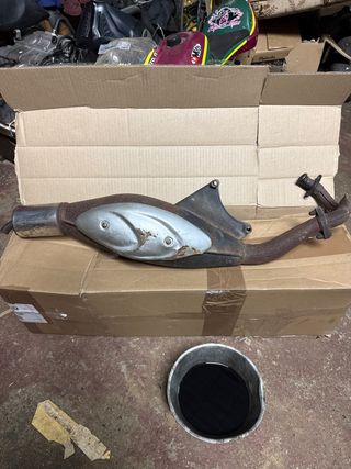 Pieza de escape original para Piaggio. - Modelo Portugues. - Diseño distintivo. venía en una zip sp de las primeras, pero vale para todas las del grupo piaggio gilera runner, Nrg etc, por lo menos las refrigeradas por agua