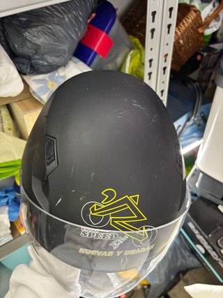 Casco de moto o scooter en color negro. - Diseño con logo Speed Bike. - Visera transparente. - Tiene marcas de uso pero con un trapo se quitan
