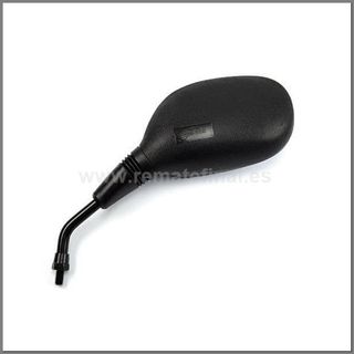 Pieza de repuesto para tu vehículo. ●Brazo ajustable. ●Recambio de estilo universal u original (OEM). Este espejo es comun en muchos modelos de scooters y motocicletas, como Piaggio, Honda, Keeway o Kymco etc. ●Diseño: Presenta una forma ovalada y aerodinámica, con un acabado en plástico negro. ●Compatibilidad: Se vende como pieza universal con diferentes opciones de rosca, comúnmente M8 o M10, para adaptarse a distintos modelos de motos. ●Homologación: Este espejo está homologado (llevan la marca "E" seguida de un número en el espejo) para cumplir con las normativas europeas para la ITV.