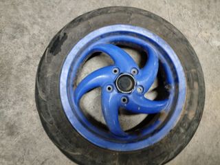 Vendo rueda para moto o scooter de 49cc. Está prácticamente nueva. - Llanta azul en buen estado. - Neumático en buen estado. - Medida: 90/70-12