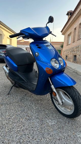 Scooter Yamaha Jog RR de 49cc, un modelo icónico y ágil. - Diseño deportivo en blanco y azul. - Ideal para desplazamientos urbanos. o cambio por motor de barco de 90 CV